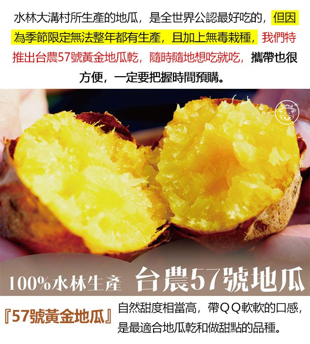 【台農57號黃金地瓜乾】來自地瓜的故鄉—水林大溝村,選用台灣頂級地瓜純手工製成…
