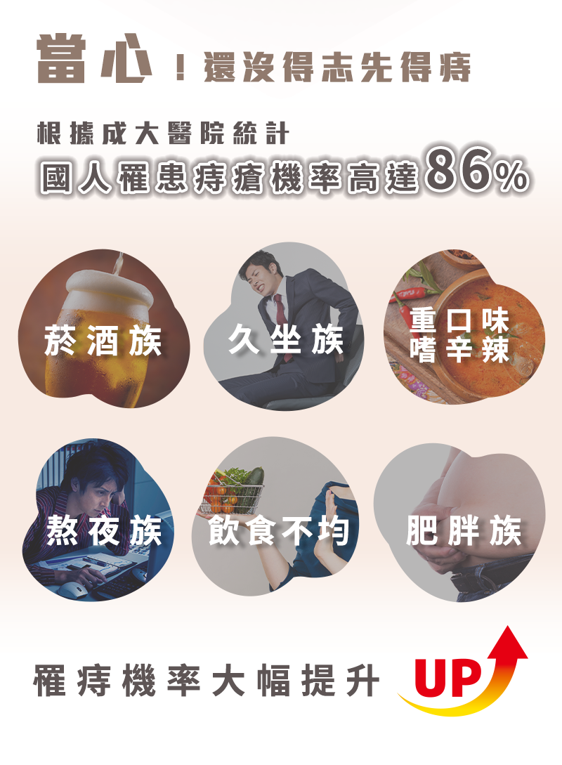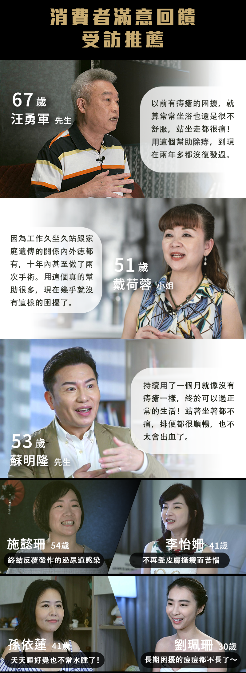 【適合對象】:12週歲以上兒童/成人,患有内痔、外痔的
